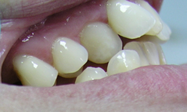 Ako su zubi preveliki za vilicu, dolazi do njihovog zbijanja zbog čega se oni mogu razvijati samo savijajući se unazad ili ‘preko’ susjednih zuba.