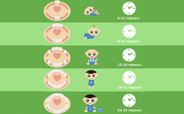 Nicanje zubića je relativno bezbolno za većinu djece,a počinje od trećeg mjeseca i završava se oko petnaestog mjeseca. Prvo rastu prednji zubi – sjekutići, obično prvo donji pa gornji, zatim su sljedeći očnjaci i na kraju kutnjaci, mada se mora naglasiti da je raspored rasta zuba individualan. S obzirom da su sjekutići veći od ostalih zuba, pretpostavlja se da pri nicanju uzrokuju više bola, dok rast zadnjih zuba može da prođe neprimjećeno. Do kraja treće godine dijete ima 20 mlječnih zubića, a oko šeste godine dolazi do zamjene mlječnih zubića stalnim zubima.
