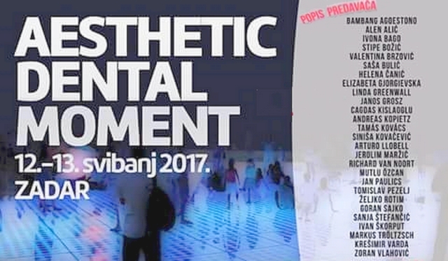 Hrvatsko društvo estetske dentalne medicine-HDEDM i Hrvatska komora dentalne medicine – HKDM organizuju kongres estetske dentalne medicine pod nazivom “Aesthetic Dental Moment” koji će se održati u Zadru od 12. do 13. maja 2017. godine.