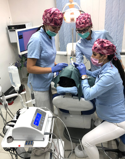 - najsavremenije materijale, najprestižnije implantološke sisteme u svijetu, kao i najnovija dostignuća iz oblasti estetske i kozmetičke stomatologije (mostovi i krunice cirkonijumu, VITA, CAD/CAM materijali, Cerek, Inlay, Onlay, parcijalne krunice, Veneer, Non-prep veneers, nakit za zube…)