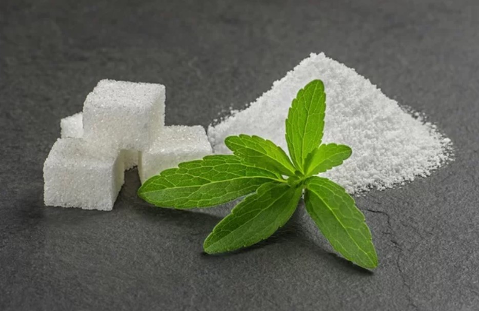 Stevia rebaudiana je žbun, porijeklom iz Paragvaja, prirodni zaslađivač 300 puta slađi od običnog šećera. Za razilku od šećera, ne izaziva karijes ni nepoželjnu toleranciju na ukus, spriječava nastajanje zubnog plaka, nema kalorija i nema štetnih nuspojava kao vještački zaslađivači. Ova biljka je svojom konkurentnošću šećeru  dovela do polemika na temu njenog uticaja na zdravlje koje zbog  uticaja političkih i ekonomskih lobija ostaju pod znakom pitanja. Žvakaće gume sa steviom su dozvoljene, ali ih još uvek nema na našem tržištu.