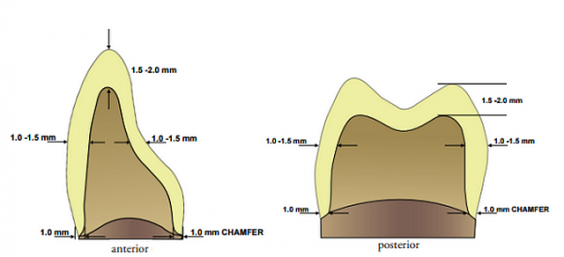 Stražnji zubi imaju istu stepenicu, brusi se 1,5–2 mm okluzalno i 1–2 mm aksijalno. Za stražnje zube moguća je i supragingivna preparacija. Primjenjuje se za sanaciju u prednjim i stražnjim regijama zubnog niza jer ima dobru estetiku i dugotrajnost, za mostove dužih raspona kao i na implantatima.