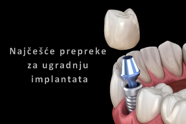 Ponekad postoje privremene prepreke koje se moraju uzeti u obzir prilikom planiranja ugradnje implantata. One su najčešče stomatološke prirode, ali postoje i one koje to i nisu te o njima treba povesti računa, često i uz savjetovanje sa doktorima iz drugih grana medicine. Spomenićemo neke od njih.